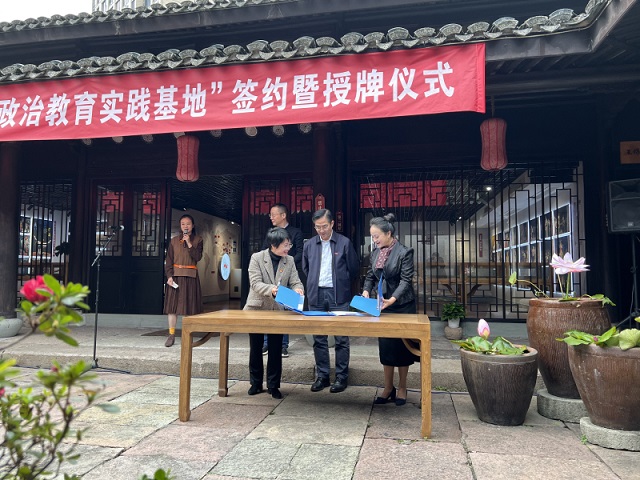 “知行新说——思想政治教育实践基地”签约暨授牌仪式今天在宁波市甬剧艺术博物馆举行。