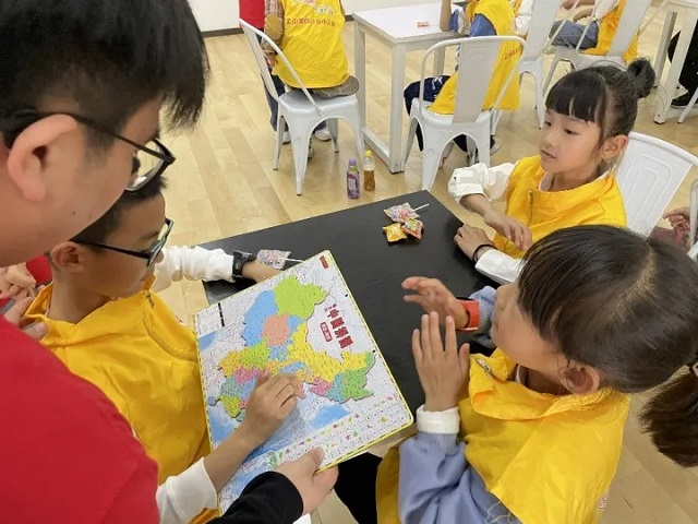 3月12日,姜山镇“公益小火车·一起向‘姜’来”研学项目邀请到宁城院国际学院的老师为小朋友们带来一节地理中国课。“这是哪里啊,你们认识吗?”鲍一菲老师向小朋友们提问。“这是沙漠,敦煌沙漠。”“我知道丝绸之路。”小朋友们七嘴八舌的说道。