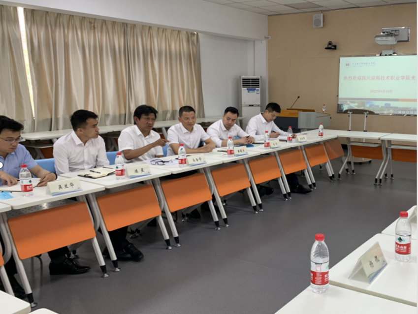 6月10日,四川应用技术职业学院党委书记马金华,党委委员、副院长黄俊涛,党委委员、校长助理陈星一行7人来校访问。学校党委书记周国明,院长史习明,党委委员、副院长潘菊素接待了马金华一行。