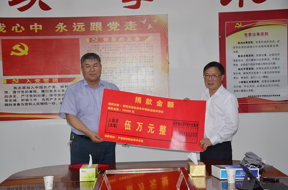交流结束后,周国明代表学校为库车中等职业技术学校捐赠5万元。