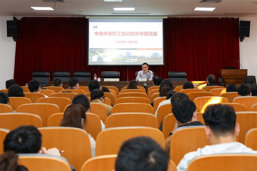 党委副书记王春潮主持讲座。讲座系学校中青年教职工培训培养计划内容之一,该培训培养计划自11月9日启动以来,已举办专题讲座3场,主题讨论1场,在中青年教职工群体中反响热烈。