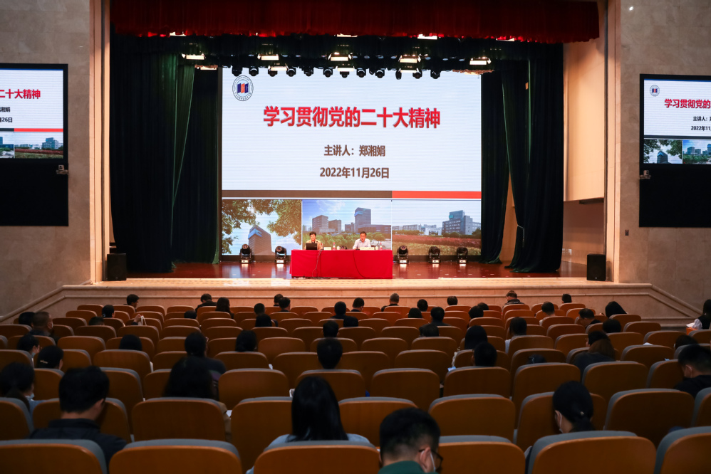 11月26日,市委党校二级巡视员郑湘娟教授应邀来到我校,作学习贯彻党的二十大精神专题辅导讲座。校党委理论学习中心组全体成员、中青年教职工培训班全体导师团成员和学员等240余人参加。党委书记周国明主持讲座。
