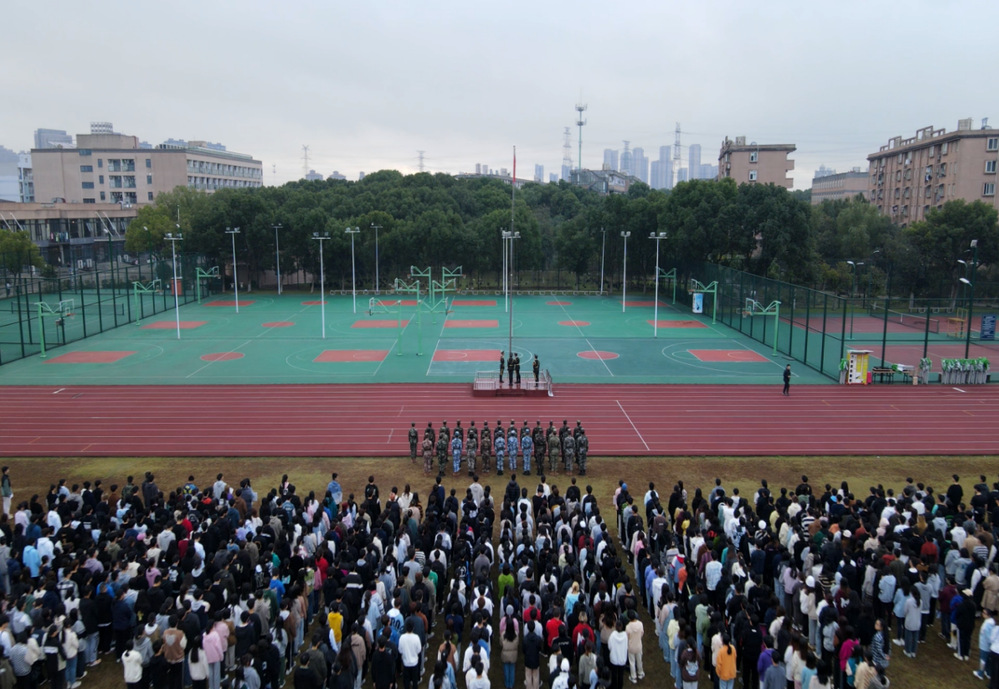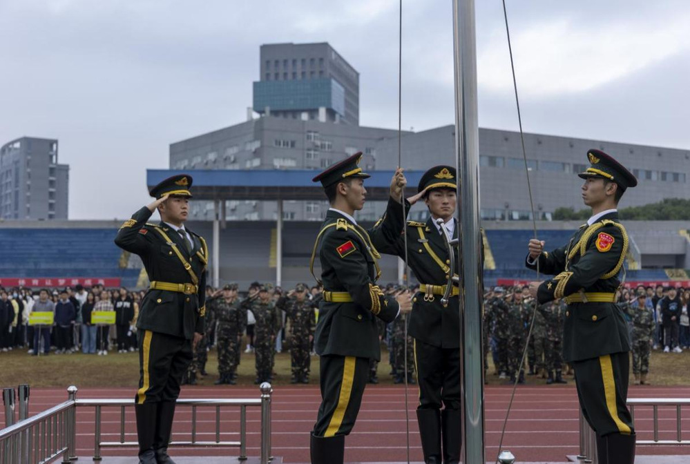 28日7时,我校退伍军人协会仪仗队迈着整齐的步伐入场,五星红旗在校园冉冉升起。近千名学生代表站在国旗下庄重地宣读中华人民共和国宪法,学习宪法,了解习近平法治思想,从而树立国家安全、诚实守信、规则意识。