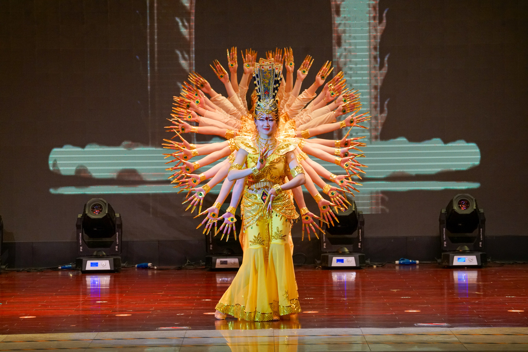 晚上6:00,在深红涌动的舞蹈《向党旗致敬》中,活动拉开序幕。聋人舞蹈队翩翩起舞,以残缺的身体、协调有力的姿态呈现出完美的中华模样;于黑暗中寻找光明的视障演员演奏二胡《战马奔腾》,用心灵传递盲人世界的黎明和曙光;从小失去两支下臂的残疾人书法家用短小的上臂写下遒劲有力的“天道酬勤”四个大字,让全场观众惊叹不已;表演川剧《变脸》的肢残演员走下舞台,与师生近距离互动,带人领略国粹的魅力所在;曾上过央视春晚的经典聋哑节目《千手观音》,再次上演一幕幕震撼感人场面,歌曲《水手》、杂技……等让人意味隽永、品味无穷。