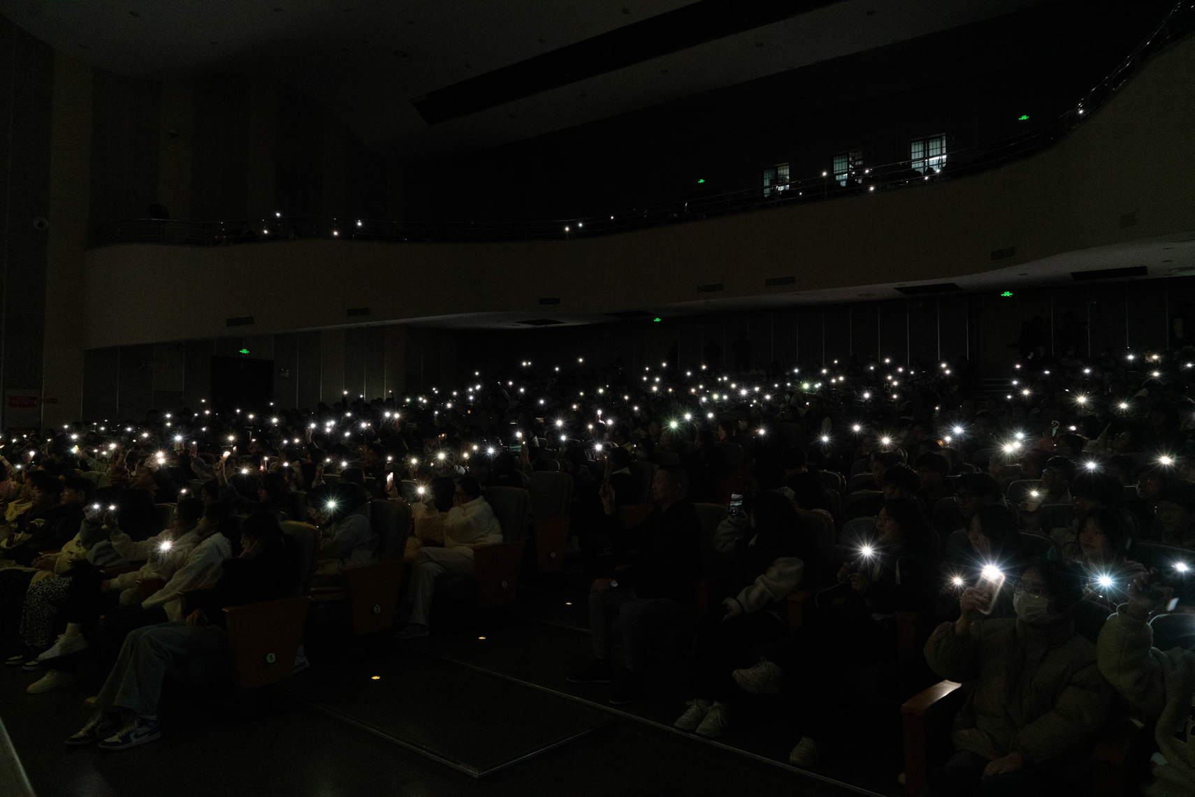 整场演出一个半小时,14个节目,800余名师生观众座无虚席。礼堂中多次响起雷鸣般的掌声,场上场下情感交融时,不禁点亮一片星海,光映全场。