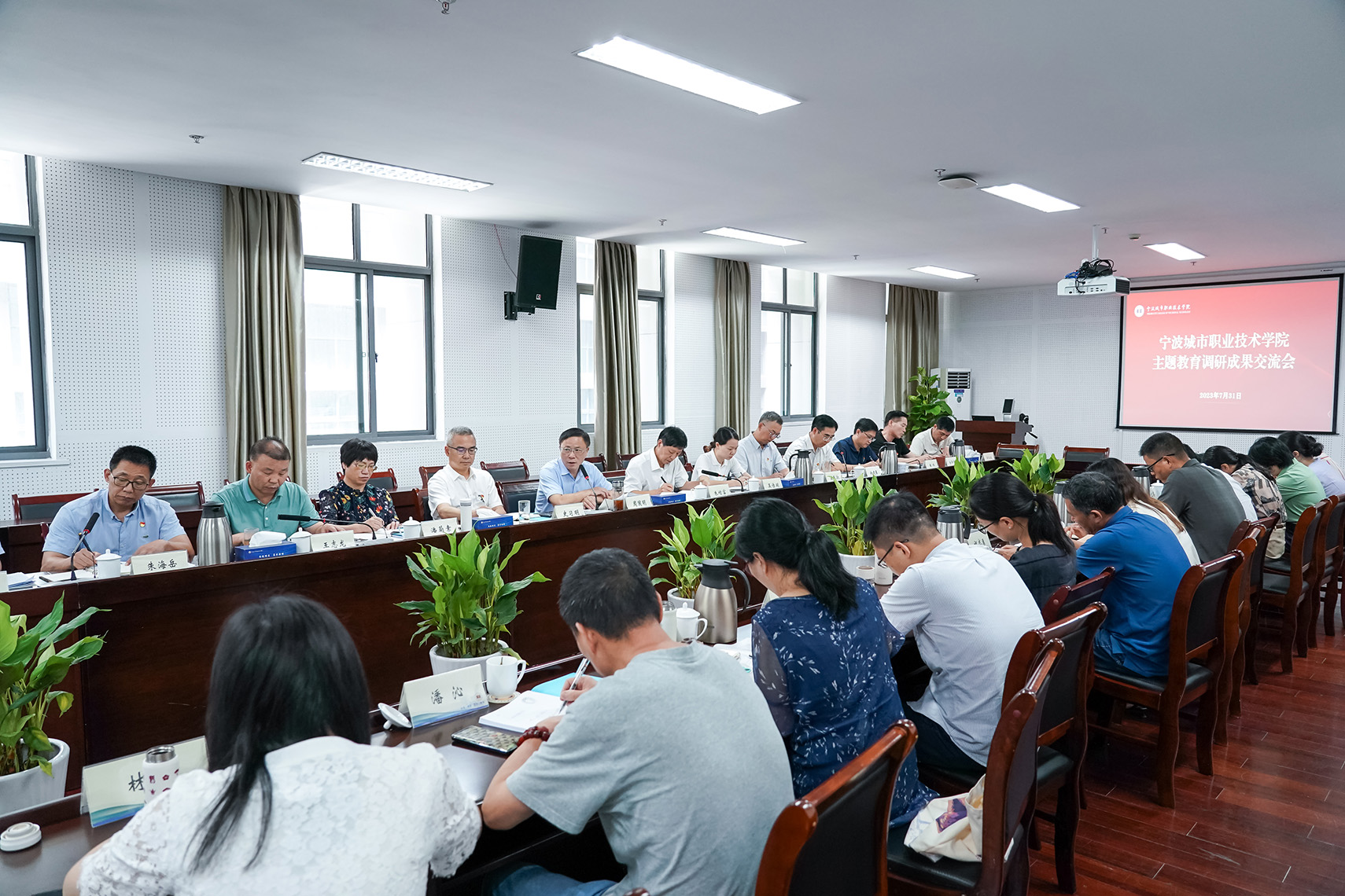 自主题教育开展以来,宁波城市职院围绕中心工作、重点任务和师生关注的焦点问题,采取多种方式沉到基层一线,摸清摸透实际情况,扎实开展调查研究,形成了一批高质量的调研报告,取得了阶段性成效。会上,学校领导班子成员围绕“象山县东陈乡加快旅游资源开发”“深化学校综合评价改革试点 助推教育事业高质量发展”等8个调研主题,逐一交流发言。党委书记周国明,党委副书记、校长史习明分别对调研报告进行点评。大家还围绕“构建教师荣誉体系 落实立德树人根本任务”“基建维修违纪违法”“违反师德师风”等3个典型案例进行深入剖析研讨,深思教训启示、评估工作成效、检视差距不足。大家一致认为,通过开展调研成果交流和典型案例剖析,进一步深化了对习近平总书记关于调查研究重要论述精神的理解把握,为确保主题教育取得扎实成效打下了坚实基础。