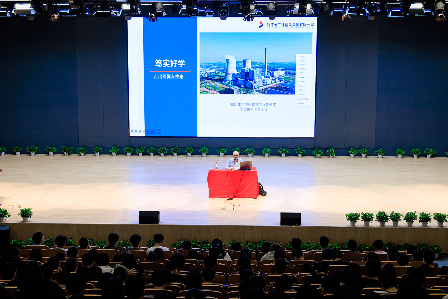 “干一行就要爱一行,更要专一行。”10月25日下午,宁波城市职院奉化校区里传来杰出工匠的心声口述,全国五一劳动奖章获得者、全国青年岗位能手、浙江省杰出工匠、浙江二建建设集团技能大师工作室领衔人夏友谊做客明责大讲堂,以《技能成才 匠心筑梦》为题,与470余名师生代表谈经历、话匠心。