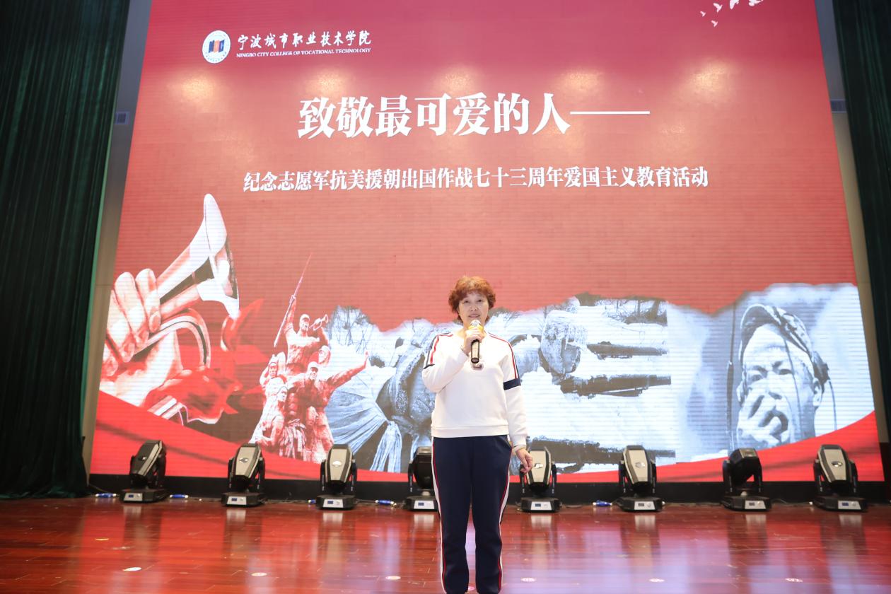 10月25日晚,纪念中国人民志愿军抗美援朝出国作战73周年爱国主义教育活动在学校综合楼礼堂顺利举办。鄞州区退役军人事务局副局长张惠斌、宁波城市职院党委副书记王春潮、副校长黄炜,宁波老战士后代联谊会执行会长傅立宪、铁军传媒浙东站副站长宋鲁周、革命烈士后代韩向民、志愿军一级战斗英雄和八路军、新四军、第三野战军战斗英雄的后代以及师生代表参加活动。