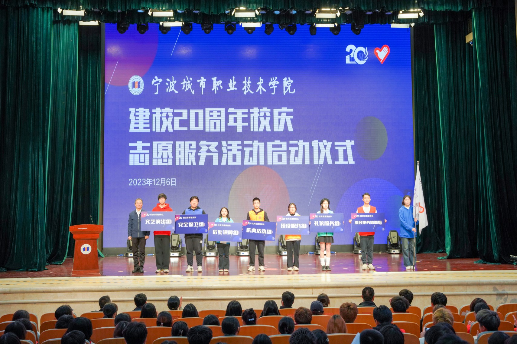 “我志愿服务于建校二十周年校庆,弘扬‘尚德明责,笃学强能’的校风校训,勤勉忠诚,热情服务……”现场,王春潮为志愿服务队授旗、授牌,全体志愿者庄严宣誓,许下承诺。仪式后,宁波市志愿者服务指导中心副主任冯静波作《大型赛会志愿服务工作培训》讲座,进一步提高志愿者的政治素质、专业水平和综合能力。