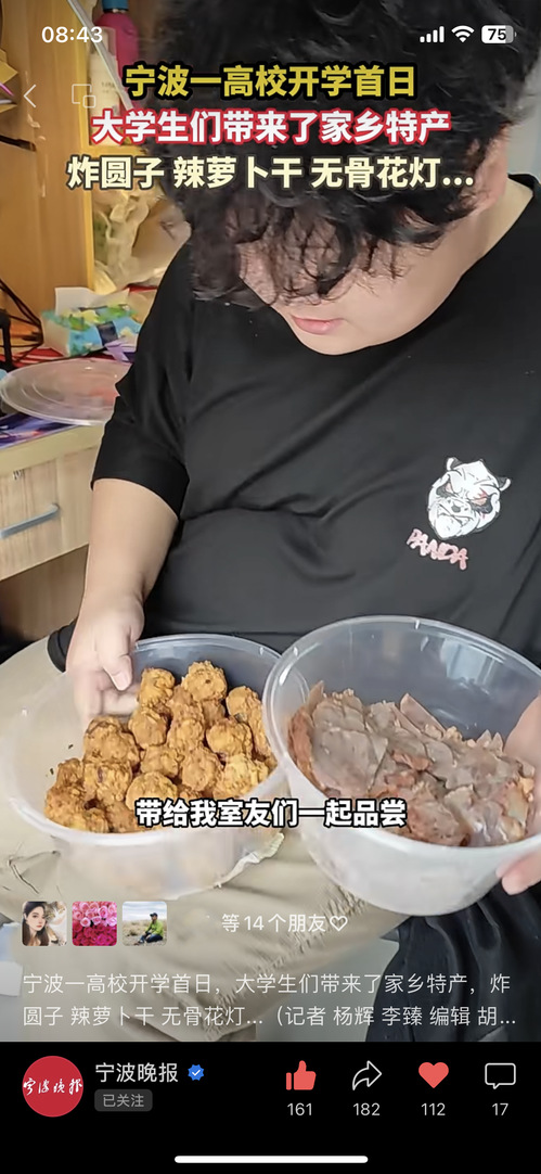 宁波发布、宁波晚报:宁波一高校开学首日 大学生们带来了家乡特产