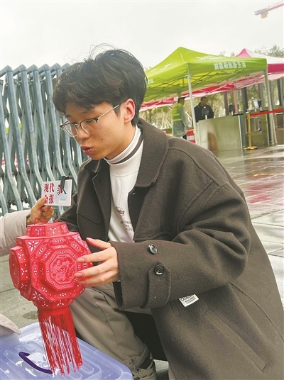 大学生们的行李箱里带了些什么家乡特产?在人群中,记者发现有个男生除了行李箱,还另外拎着透明的塑料收纳盒,很是显眼。“我家是浙江台州的,这次带了我们家乡的仙居无骨花灯,这个花灯号称‘中华第一灯’,入选了国家级非物质文化遗产呢。”这位名叫张鸿博的学生自豪地向记者介绍。据悉,这对精美的大红花灯还是当地名师手工制作的,“我准备挂在宿舍里,挺喜庆的,做个装饰吧。”
