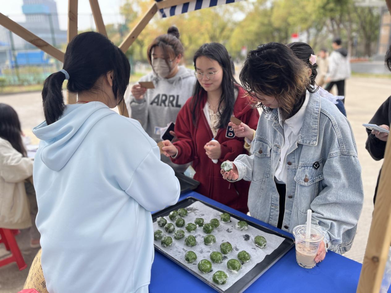 根据清明节日民俗,烘焙社、DIY手工社、足球社等7个社团,精心准备了社团体验活动,吸引广大师生积极参与。大家各显其才,动手做青团,抢答“清明节”飞花令,手绘“纸鸢”,绘制彩扇,体验宋式点茶……在活动中感受中华优秀传统文化的魅力。人气最旺的当属烘焙社的“艾”上青团活动,摊位前早早排起了长队,烘焙社的成员手把手教大家如何制作“青团”。“我是土生土长的浙江人,今天还是第一次体验自己动手制作,吃着格外香。”22CS启航班倪睿哲说。