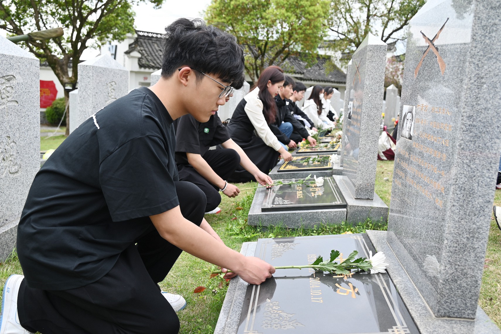 4月3日,旅游学院组织青马工程学员代表、在校班级学生代表前往同泰嘉陵浙东抗战老兵纪念园,进行“缅怀革命先烈,赓续红色血脉”清明节祭扫主题教育活动。师生们迈着沉重的步伐,怀着悲痛的心情,来到烈士墓前,默哀、献花,悼念敬爱的革命英烈。“00后”宣讲员高子梅进行了《红色基因薪火相传,激扬青春不负芳华》主题宣讲,讲述一代代共产党人挥洒青春、播种革命火种的故事。
