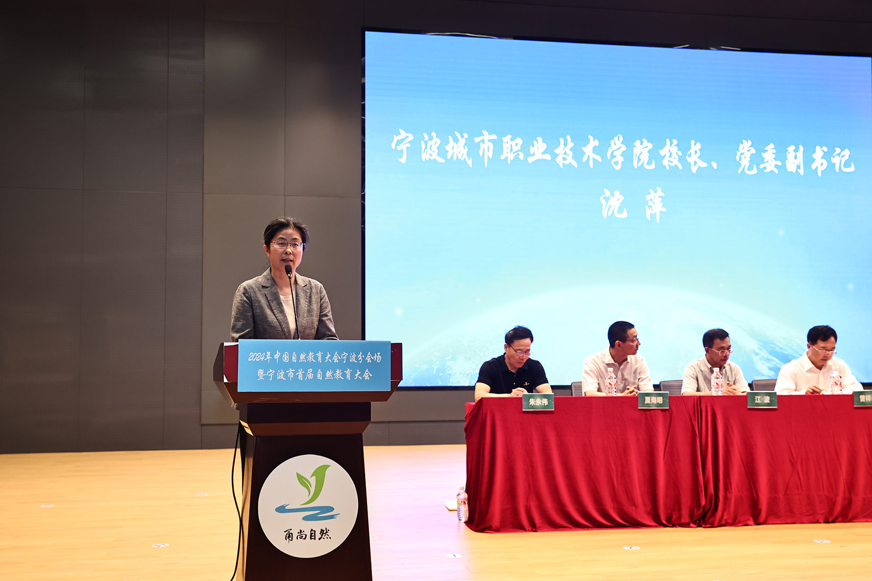 沈萍在致辞中代表学校向大会的召开表示热烈的祝贺,她介绍了宁波城市职院的基本情况,并表示学校将继续强化对社会服务和自然教育工作的支持保障力度,利用专业优势,依托国家级园林绿化应用技术协同创新中心、全国城市园林行业产教融合共同体等教学科研平台,多渠道开展自然教育。同时进一步强化自然教育理论研究,积极申报自然教育示范基地,引入社会专家资源,推进多样化课程开发,建设自然教育人才队伍,为相关工作开展提供有力的科研支持与人才支撑,助力乡村振兴,推动自然教育事业发展。