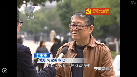 导读:时值宁波市“十二五”教育成果总结之际,我校以责任文化为统领的学生职业素质养成教育工作受到宁波市委宣传部关注,入选市委宣传部“重大主题报道选题”。2016年1月3日,宁波电视台第一频道《宁波新