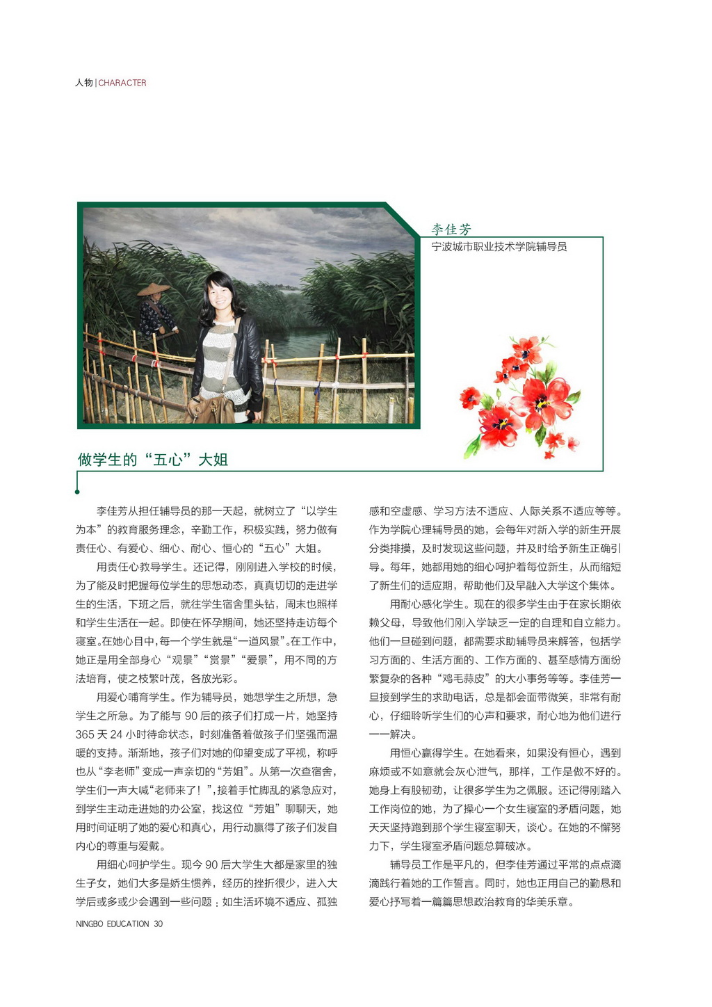 《宁波教育》:李佳芳:做学生的“五心”大姐——宁波市优秀辅导员系列报道