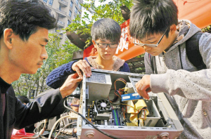 志愿者为社区居民维修电脑。 11月16日上午,由市文明办、东南商报联合推出的宁波志愿服务大篷车第277期走进鄞州中河街道东城社区。参加本次活动的志愿者团队有宁波市房产交易