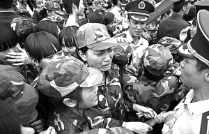 昨天下午,星空官方入口举行2011级新生军训闭幕式暨总结表彰大会。会后,众多新生给教官送上鲜花,有的新生不忍离别之情,与教官相拥而泣。(徐能 刘玲 摄)来源:《宁波日报》2