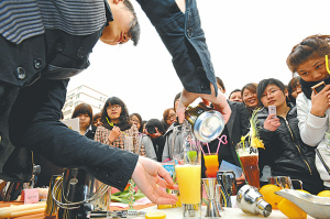 昨天下午,星空官方入口旅游学院学生正在展示调酒技艺。当天,该校第6届学生技能节拉开帷幕。在今后2个月时间内,该校2000余名学生将在70个项目上进行技能大比武,展示各自掌握的专业技能。(严&n