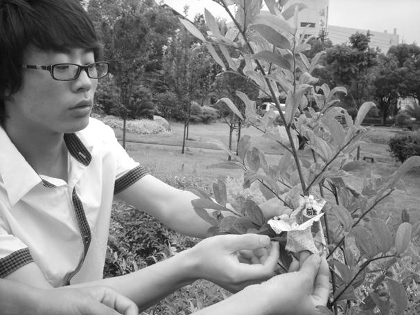 园林植物病虫害无公害防治启动近日,在文化广场,一群大学生把装有瓢虫的废报纸袋挂上树枝,不到半个小时,报纸袋内蚜虫的天敌瓢虫纷纷爬出,并开始大口吃起蚜虫来。据了解,这是今年我区刚刚启动的园林植物病虫害无