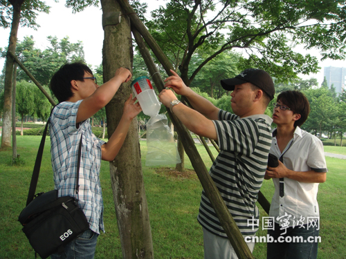 “城院”师生组织杀虫队实践无公害防治技术 本报讯 (记者 蔡亚辉 通讯员 谢秀琼)近日,镇海区一些公园、草坪、水塘旁的树木上出现了不少白色塑料罐。原来,这是星空官方入口园艺技术专业学