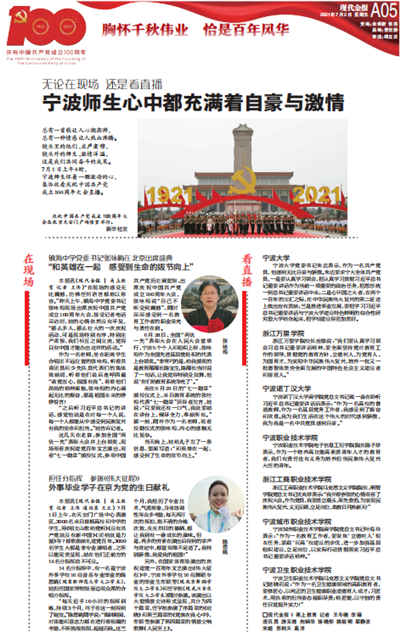 《现代金报》:无论在现场还是看直播,宁波师生心中都充满着自豪与激情