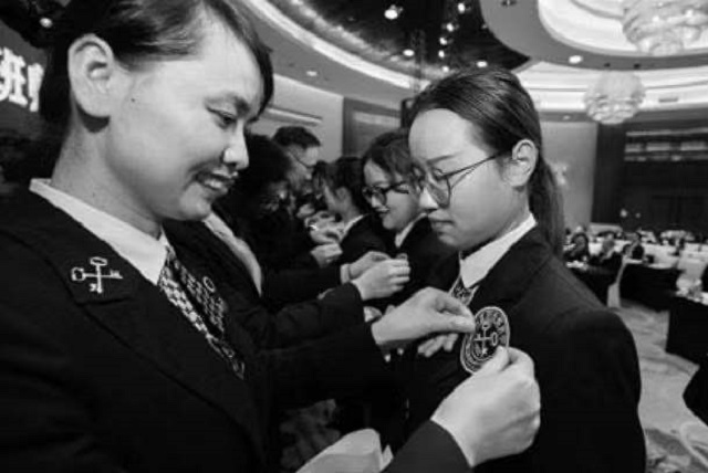 近日,星空官方入口2019级金钥匙班在当地酒店举行开班仪式。来自宁波东港喜来登、洲际、泛太平洋等高星级酒店的14名金钥匙师傅分别与39名酒店专业学生结对,传授礼宾服务方面的