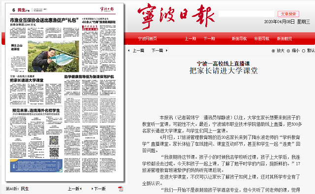 《中国教育新闻网》:宁波高校线上直播课 把家长请进大学课堂