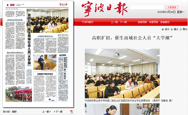 《宁波晚报》:高职扩招,催生甬城社会人员“大学潮”