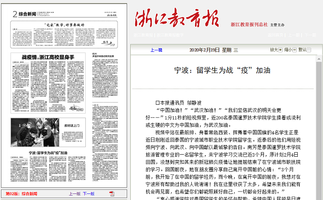 《浙江教育报》:宁波:留学生为战“疫”加油