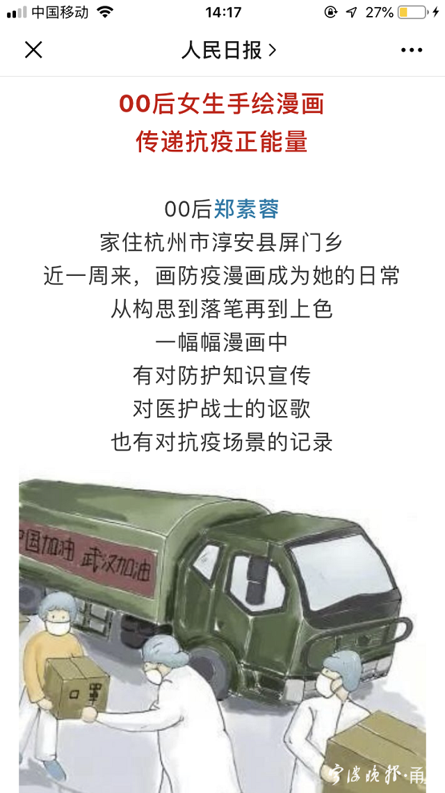 《中国宁波网》:人民日报点赞宁波00后女大学生:手绘漫画传递抗疫正能量