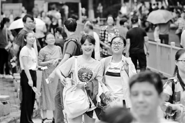 效实中学考点,考生表情轻松地走向考场。 记者 张培坚 摄 昨天,2019年高考拉开帷幕,高职