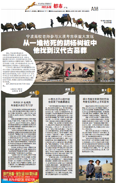 《现代金报》、《甬派》、《中国宁波网》:从一堆枯死的胡杨树桩中 他找到汉代古墓葬