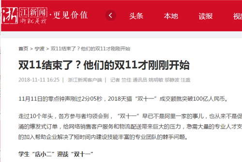 《浙江教育报》:宁波城市职院学生助力企业“双十一”