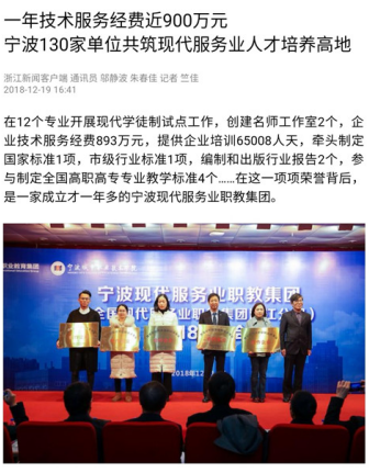 《浙江新闻》:一年技术服务经费近900万元 宁波130家单位共筑现代服务业人才培养高地