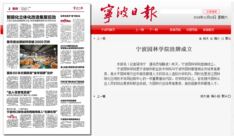 《宁波日报》、《甬派》:宁波园林学院挂牌成立
