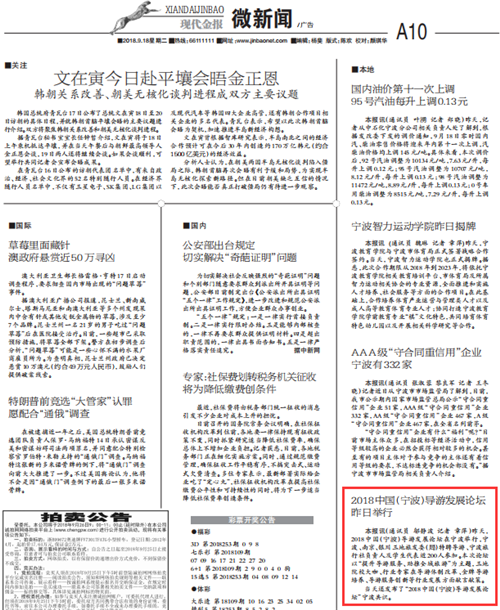 《现代金报》:2018中国(宁波)导游发展论坛昨日举行