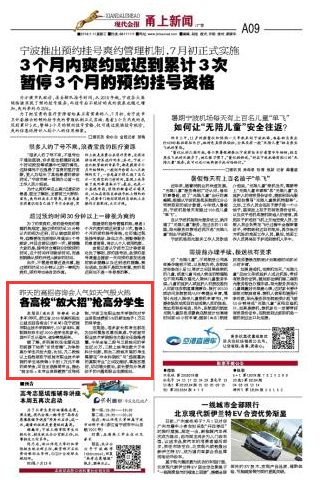 《凤凰网》、《现代金报》:各高校“放大招”抢高分学生