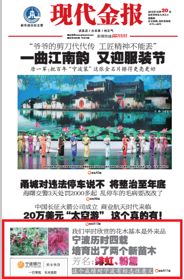 《现代金报》:宁波培育出两种新苗木芳名:绯虹、粉黛