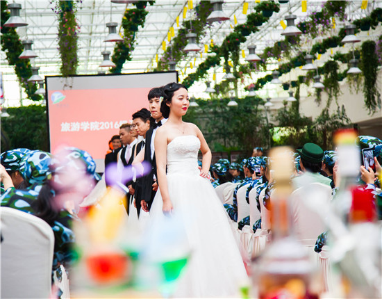 玫瑰园里的婚礼走秀咔咔咔,新生们不停地按下手机快门。学长学姐们自制的美食诱惑。缤纷美酒,就像是青春的色彩,酒不醉人人自醉。 茶艺表演,这很城院! 鲜花、美酒、美食、