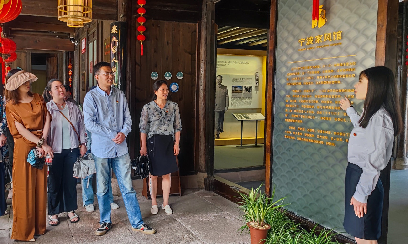 “老师们,我们现在经过的是廉政文化广场,大家可以看到各类‘德’字主题墙……”6月14日下午,学校旅游学院30余名党员教师在宁波家风馆开启了一场党纪学习教育“现场课”,这堂课的“主讲人”是清风讲解员王盈盈、张爽爽。两位讲解员是旅游学院“清青旅院”清风讲解团的成员。在她们的带领下,党员教师们从章镒、张苍水等海曙清廉代表人物,到宁波家风馆、御史馆、古林乡村振兴共富体验线,身临其境感受海曙清廉文化。在参观过程中,旅游学院的鲍文君和傅远柏老师从导览讲解内容、讲解技巧、语言艺术、导览体态等方面,对讲解员的表现进行了点评和指导,鼓励她们继续提升专业素养,丰富讲解内容。“接到讲解任务,我们准备了好几天,提前去现场踩点,一次次模拟讲解,力求呈现最佳效果。”张爽爽说,之后还要不断增强讲解的故事性和灵动性。据了解,“清青旅院”清风讲解团作为学校旅游类专业实践教学的创新载体,现有成员39名。该讲解团的创立,旨在搭建一个理论与实践相融合的平台,引导学生将所学知识与实际应用相结合,让学生在实践中感受时代变迁、提升综合素质。今年1月,旅游学院与宁波市会展旅业有限公司、海曙区文化和广电旅游体育局联合开展了高校讲解员素