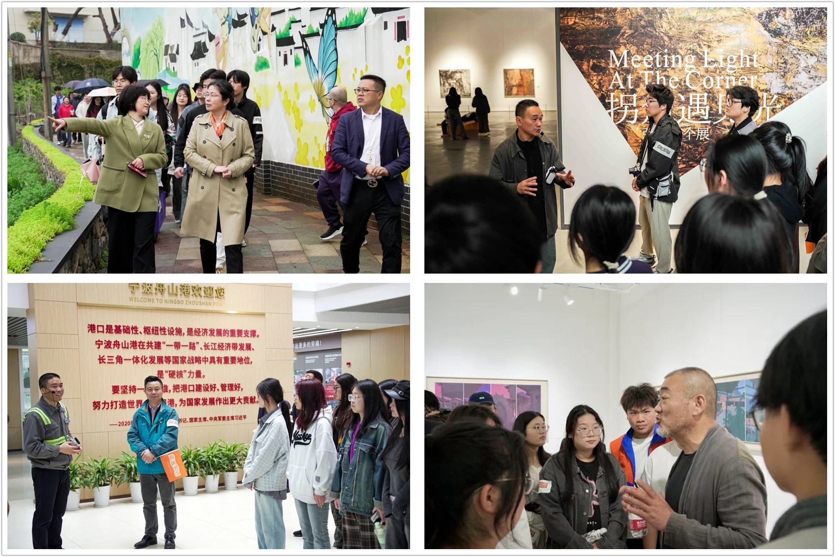 4月20日下午,随着“赏画”主题活动的结束,“阅城知行”主题系列活动2024春季篇圆满收官。此次活动为期近一个月,全校128名学生参与其中,他们用脚步丈量城市,深度领略甬城的人文特色,同时也在实践中深化了专业素养。本季活动围绕“品业”主线,策划了“探村”“品艺”“瞰港”“赏画”四期主题,在学校校长沈萍、艺术学院院长潘沁、商学院院长胡坚达以及当代艺术家林海勇分别引领下,学生们深入安山人文聚落感受新农村变化,沉浸式体验企业就业岗位和工作环境,了解业态经济发展新形势;探访宁波美术馆,领略多元艺术融合之美,寻求专业学习、兴趣发展和就业选择的衔接点;走进宁波舟山港,感知专业技术技能的实践应用与社会价值;漫步云林艺术中心,提升美学素养,开拓艺术创作视野。通过这些活动,学生们不仅深刻体验了城市与专业的交融,更在品味甬城文化脉动中汲取了丰富的专业知识。据悉,“阅城知行”主题活动由学校机关党总支和艺术学院党总支联合打造,自去年秋季篇推出以来,就受到了学生们的广泛好评。今年的活动更是得到了浙江教育报、甬派客户端、现代金报等省市媒体的全方位报道,产生了良好的社会反响。“可以说,‘阅城知行’主题活动已经成为学