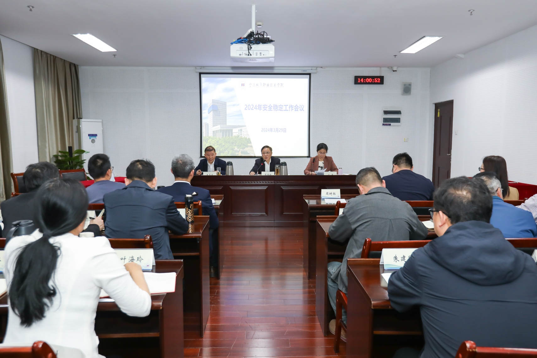 3月29日下午,学校召开2024年安全稳定工作会议,党委书记周国明主持,校长沈萍讲话,党委委员、副校长王志龙作2023年安全稳定工作总结与2024年工作布置。全体在校校领导、中层干部参加会议。“没有安全稳定的局面,一切都是零。”周国明在主持讲话中强调,安全稳定是校园工作的基石,再怎么重视都不为过。各级责任主体要深刻领会会议精神,切实把安全稳定工作做细致、做扎实;要及时研判排查各类风险隐患,做到早发现,早处置,早解决;要提升安全责任意识,强化责任措施落实,筑牢安全稳定屏障,确保2024年安全稳定工作取得实效。沈萍在会上指出,校园安全管理工作任重道远,要继续全面压实校园安全工作责任,全力打赢防范校园安全风险主动仗。她强调,要进一步提高政治站位、保持政治清醒,切实增强做好安全稳定工作的责任感和紧迫感;要加强组织领导、完善体制机制,压紧压实安全稳定工作责任链条;要坚持问题导向,突出重点任务,全面开展安全稳定风险隐患大排查,确保校园安全稳定,为学校事业高质量发展提供保障。王志龙总结汇报了学校2023年安全稳定工作,梳理了当前存在的隐患和风险,具体部署了2024年工作。2024年,学校将着力健全完
