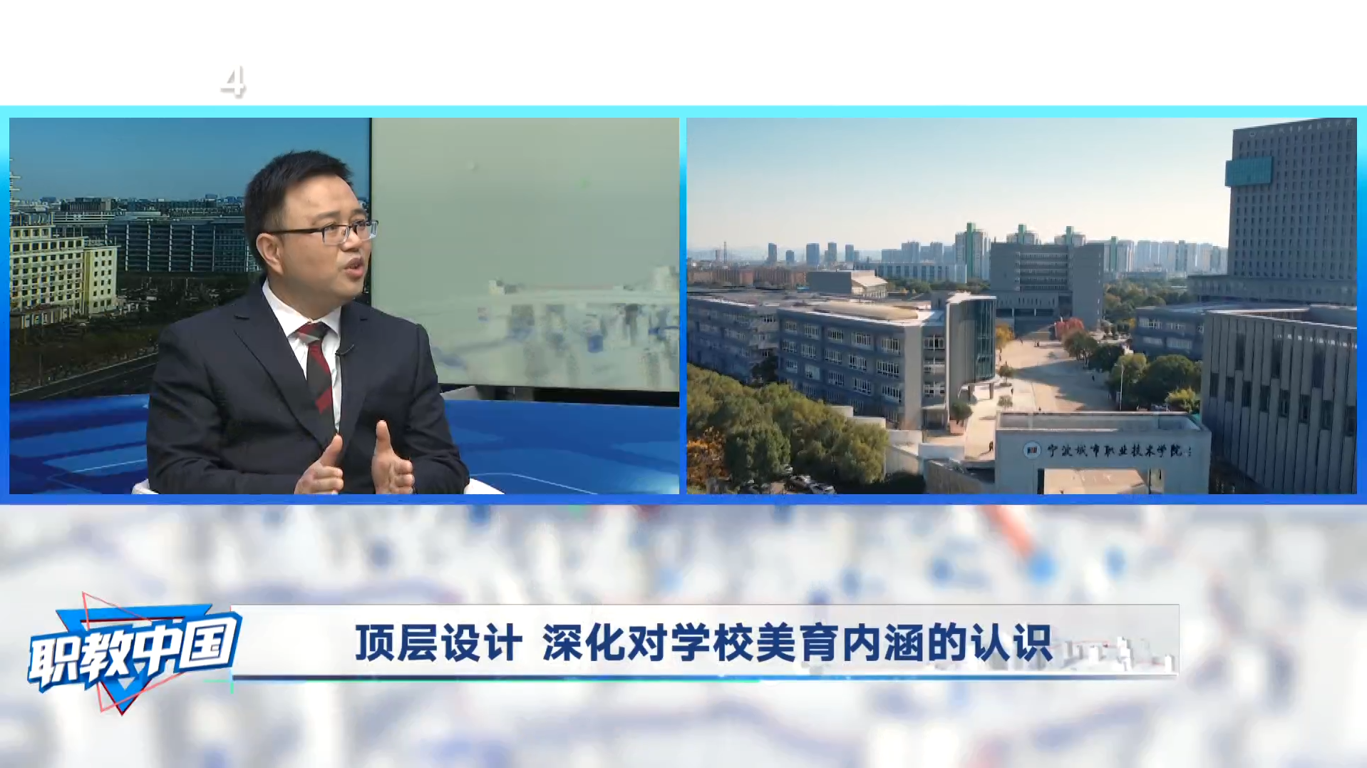 2月17日,中国教育电视台四频道《职教中国》播出了第163集《以美润心职业教育向美而行》,宁波城市职院副校长、全国美育职业教育集团副理事长叶宏武作为嘉宾,介绍分享以美育素养提升学生职业能力、助力技术技能人才全面发展的宁波城市职院范式。叶宏武在介绍中指出,宁波城市职院的“美育浸润行动”,不仅局限于艺术领域,而是渗透到了校园生活、学习的方方面面。除了搭建校园美育环境、普及艺术实践活动等,更多的是将美育融入到日常教育教学和人才培养中。比如园林景观类专业强调美学原则和艺术性,培养学生对于形式美、空间美和生态美的感知和表达能力,在实践环节中,鼓励学生运用艺术元素进行景观设计,将美育与园林专业技能相结合;旅游类专业增加对旅游目的地的文化、历史和艺术背景的介绍,培养学生的文化素养和解说能力。学校注重配齐配好美育教师,建设了一支专兼职结合、校地共建共享的美育师资团队,邀请校外非遗传承人、民间艺人、地方文化单位的业务骨干为校外兼课教师,聘请校外美育专家进课堂,开沙龙、做讲座,相互融合,相互促进。此外,学校还创设了特色评价内容与标准《“四个一”审美手册》,每一位学生完成“四个一”审美规定动作:即欣赏一件艺