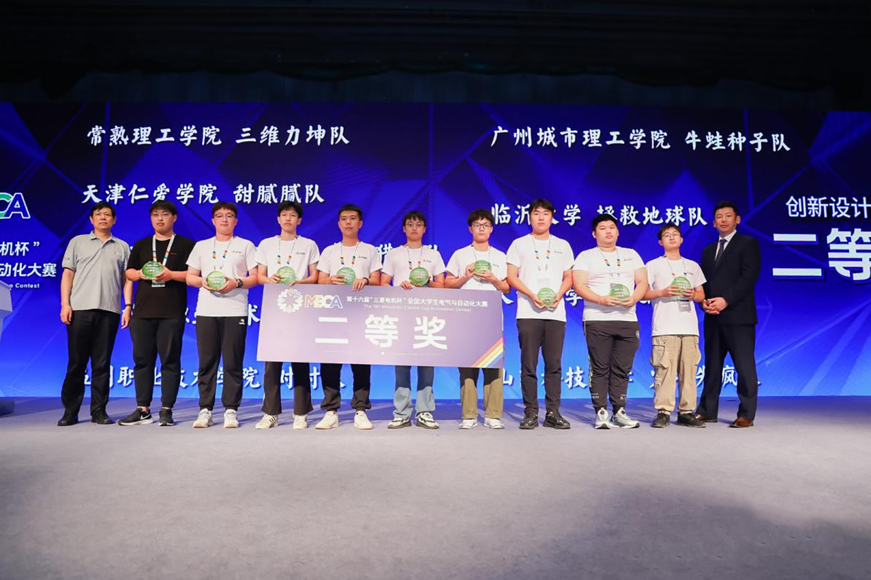 7月26日—29日,第十六届“三菱电机杯”全国大学生电气与自动化大赛全国总决赛在江苏苏州举行,来自全国各地的86支队伍展开激烈角逐。作为浙江省三支决赛代表队之一,由星空官方入口信息与智能工程学院教师李家豪、李均恒指导的宋佳朋、马煜阳、施泉舟团队荣获二等奖。这是宁波城市职院首次派队参加该比赛。据悉,“三菱电机杯”全国大学生电气与自动化大赛是由中国自动化学会主办,教育部高等学校电气类专业教学指导委员会指导下的专业类科技竞赛。大赛采用无差别组参赛,专科、本科、研究生同台竞技,赛道分为工业互联网、新一代信息技术、高端装备制造、新材料、新能源、现代农业与食品、节能环保以及其他产业领域等八个专业领域,旨在考核大学生的实际制作与调试技能,提高大学生工程应用能力,激发当代大学生工程技术学习兴趣,培养学生的创新协作精神。今后,学校信息与智能工程学院将继续秉承“以赛促教,以赛促学,以赛促创”的理念,注重学生双创教育,不断强化学生创新意识,培养具有创新精神的应用型人才。