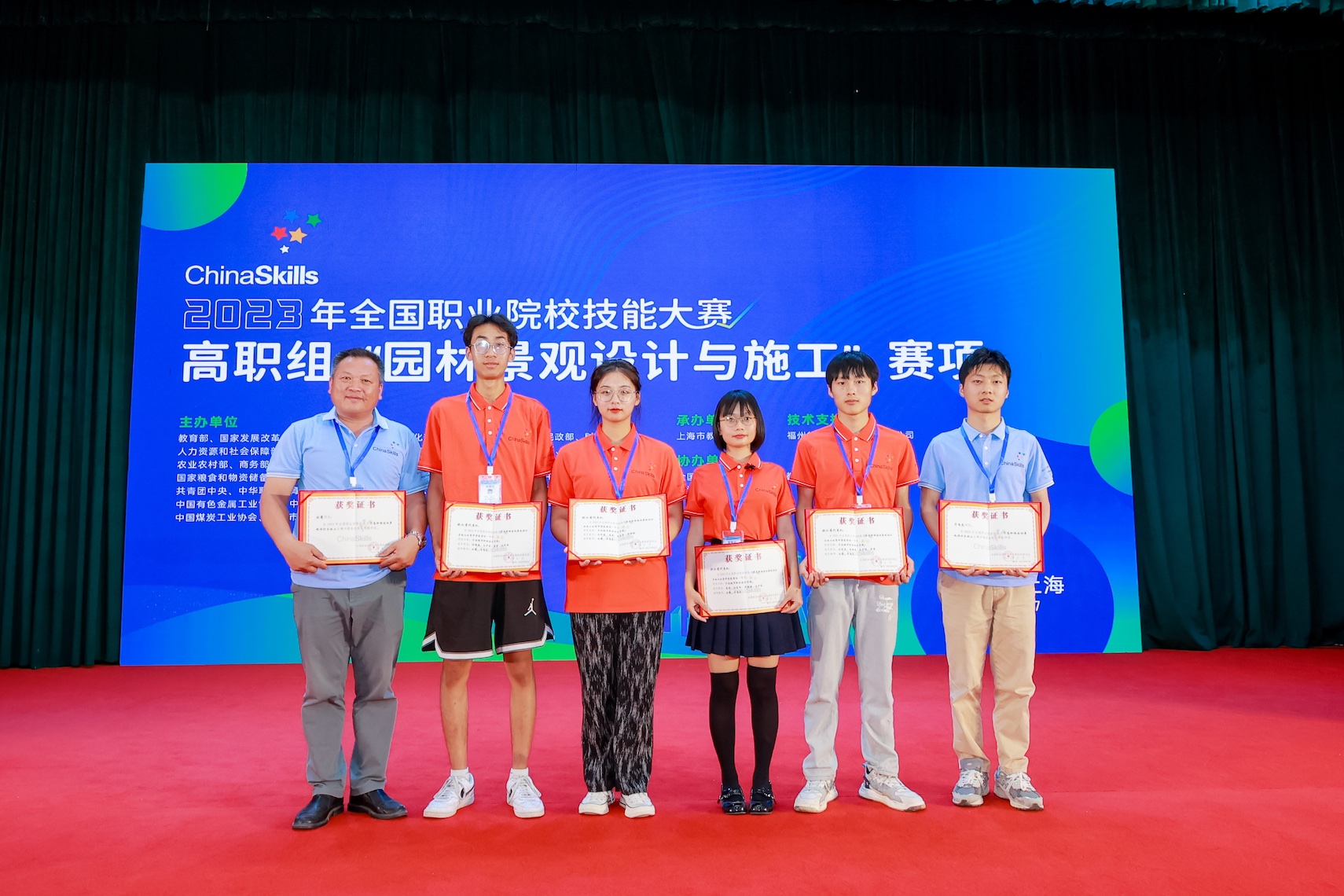 7月23日-26日,2023年全国职业院校技能大赛高职组“园林景观设计与施工”赛项在上海举行。宁波城市职院景观生态学院教师刘夔、于飞龙指导的刘东杰、陈朝盛、王伊蕊、唐苗团队,从全国55支代表队中脱颖而出,荣获该赛项一等奖。这是学校在2023年全国职业院校技能大赛中获得的第一个一等奖。“园林景观设计与施工”赛项为团队项目,每个参赛组由4位选手组成,其中2人为设计选手,另2人为施工选手。设计选手根据比赛指定的环境、材料等,在4小时内完成一套 5m×6m 的小花园景观施工图设计方案,施工选手则根据本团队设计的施工图在12小时内完成木作、砌筑、铺装、水景营造、植物造景等工作任务。比赛既要求选手具备创新设计理念、掌握绘图软件操作、熟练园林工程施工,更考核选手的团队协作意识和劳动精神。据悉,今年学校共有5支队伍获得全国职业院校技能大赛参赛资格,其中2支队伍已斩获“软件测试”和“花艺”赛项的二等奖,另外2支队伍将于近期参加“导游服务”和“云计算应用”赛项的角逐。