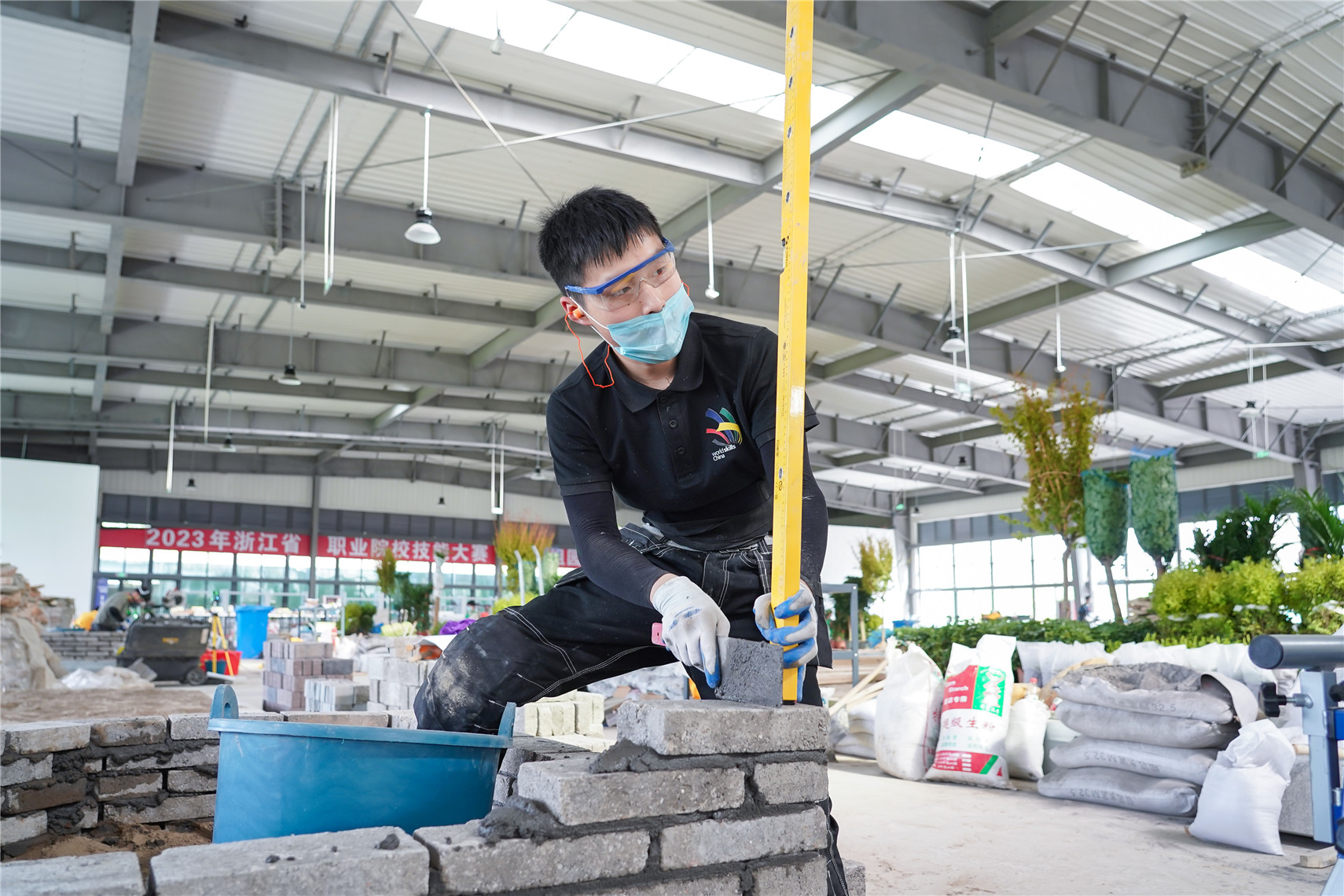 打地基砌砖头、拉大锯做木活、搭水池造景观……4月11日至15日,2023年浙江省职业院校技能大赛(高职组)园艺赛项在星空官方入口奉化校区举行。省内10所高职院校派出20名园艺“高手”,连续奋战4天,上演了一场脑力和体力的大比拼。最终,宁波城市职院景观生态学院学生刘冬杰和陈朝盛一举夺冠。19小时建一座小花园本次比赛对标国赛和世界技能大赛标准,设置了园林设计与施工两个任务,要求选手2人一组,在4小时内完成一套小花园景观设计施工图,并用19个小时把图纸搬进现实,将49平方米(7m*7m)的荒芜沙地,打造成一座郁郁葱葱、有水有景的小花园。记者在比赛现场看到,每个施工区形似一个个大沙盘,周边堆放着数量相等、种类一致的造景材料和工具。选手们身着工作服、手着劳保手套正在忙碌施工。他们熟练地运用各种工具和材料进行构图搭建,并依据自己的构想对石材、木板等进行切割。“选手们在比拼速度的同时,对“精度”也得把握好,比如砖砌花池等硬景施工误差需要控制在2毫米内。”大赛裁判长陶良知向记者介绍到,选手须在规定时间内完成花池、石墙砌筑,路面铺装,平台搭建,水景营造和植物造景等,实现小花园的“从无到有”。技能