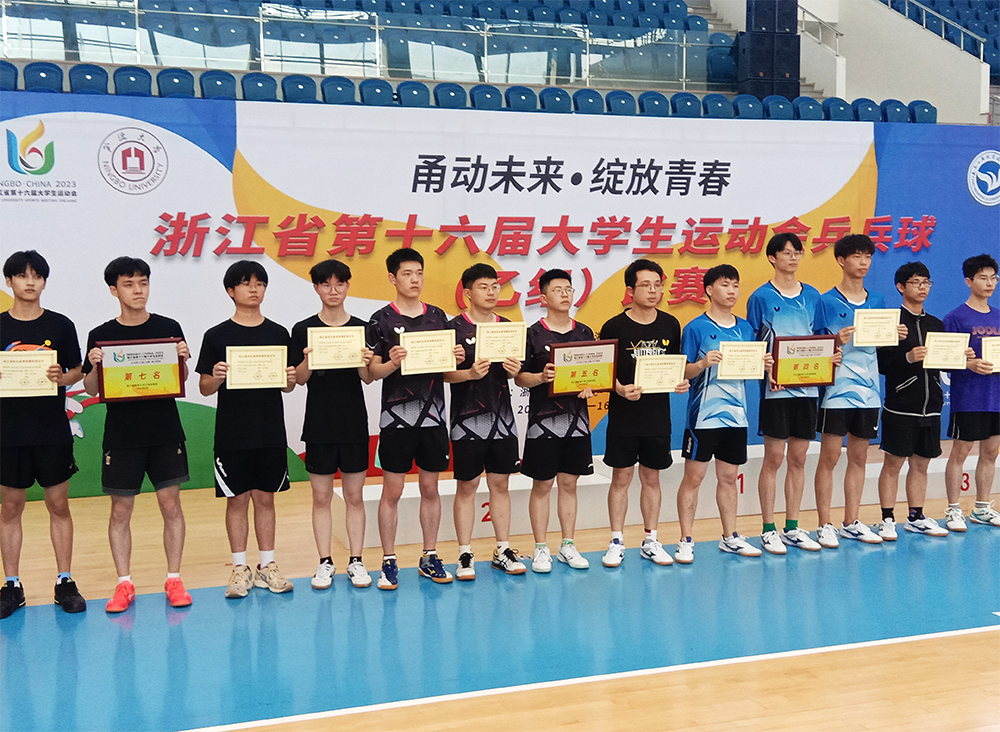 6月12日至16日,为期5天的浙江省第十六届大学生运动会乒乓球(乙组)比赛在义乌工商职业技术学院举行,来自全省27所高校的200余名运动员参加了比赛。我校学生在基础课教学部张四清等老师的带领下,勇夺男团第五、男单第三、混双第四的好成绩。在团体赛中,我校胡陈贵、李华冰、陈勃锦、金林黎、叶周义组成的男生队奋力拼搏,晋级前八,最终夺得男团第五名。在单项赛中,胡陈贵同学在男子单打项目中获得第三名,俞艳萍、李华冰同学获得混双第四名,胡陈贵同学荣获“优秀运动员”称号。一审:徐春晓 二审:金挺 三审:朱海岳