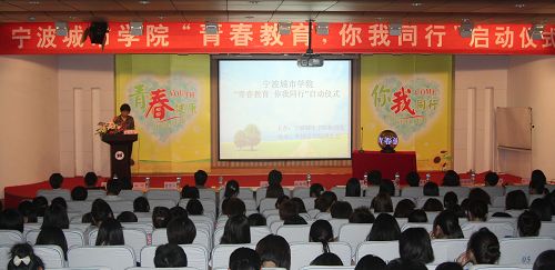 6月7日晚,由校团委主办、外国语学院协办的“青春教育,你我同行”启动仪式在报告厅举行。校党委副书记程舟群、鄞州区计生协秘书长王维芬、宁波市青春健康项目组负责人尹幼明、校团委副书记童雪央、各学院学生工作
