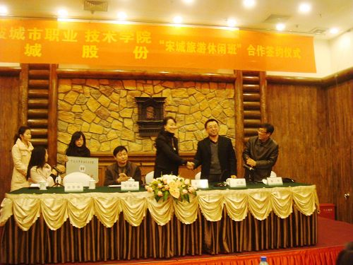 12月19日,我院旅游学院与杭州宋城旅游发展股份有限公司举行合作办学签约仪式。杭州宋城股份执行总裁张娴女士、总裁办兼人力资源部常务副总赵雪璎等人出席了本次签约仪式,我院院长李太武,相关单位、部门领导,